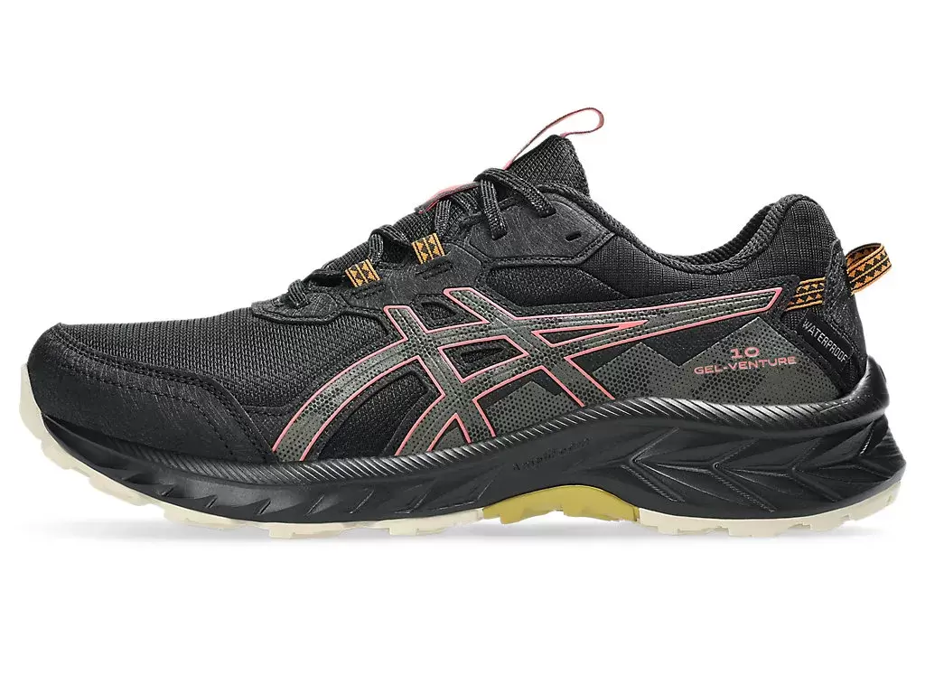 Buty GEL-VENTURE® 10 Waterproof zostały zaprojektowane tak, aby zapewnić dobrą amortyzację i wygodę w mokrych warunkach. Ta wersja ma wodoodporną cholewkę, która pomaga utrzymać wodę z dala od wnętrza buta.