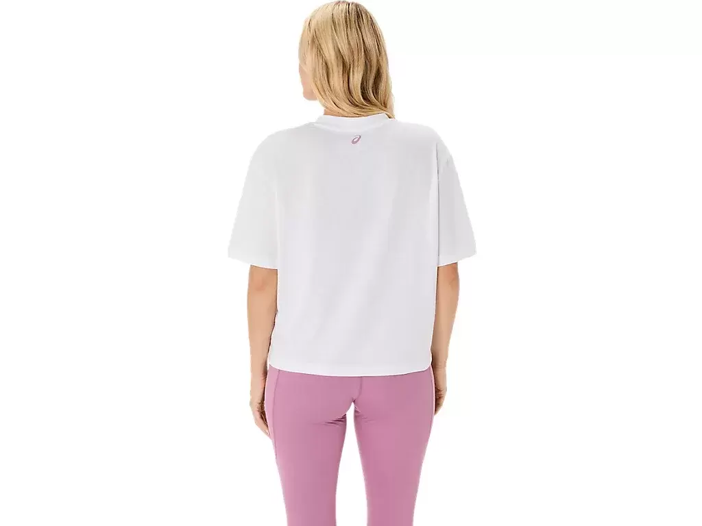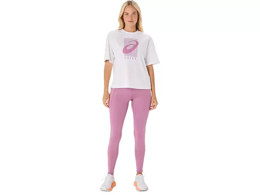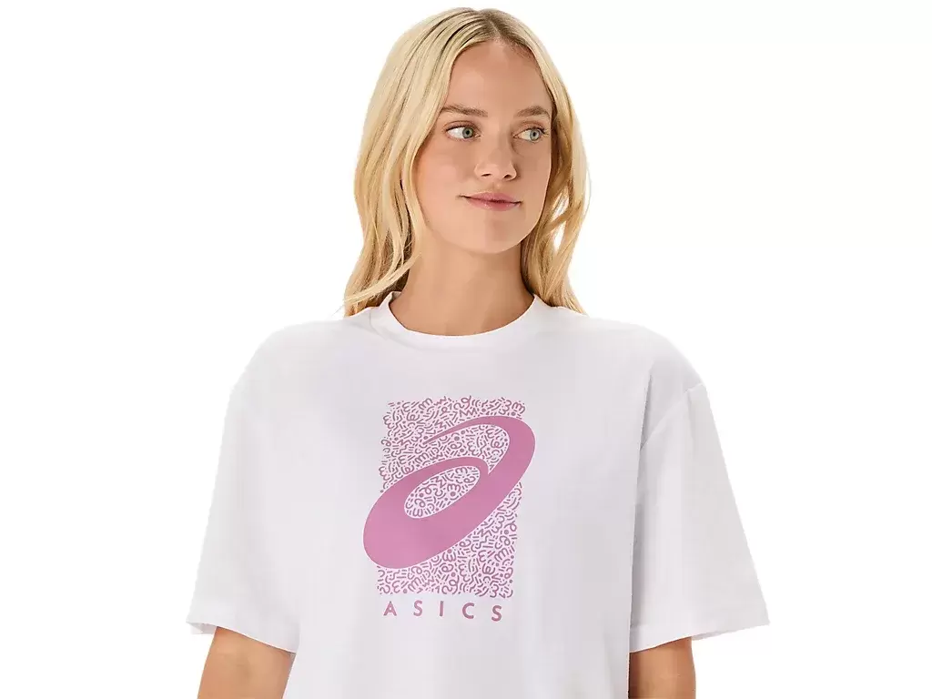 Górę uzupełnia sezonowa grafika ASICS® Spiral, skrócona długość, luźny krój i boczne rozcięcia dla łatwości ruchu.