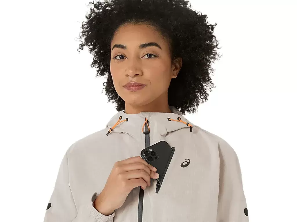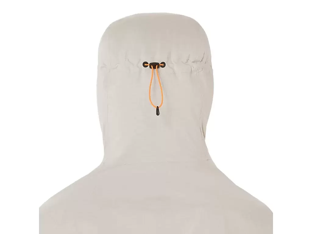 Ma również wysoki kołnierz i otwory na kciuki, które chronią przed niekorzystnymi warunkami pogodowymi, a kaptur z regulacją z tyłu głowy umożliwia indywidualne dopasowanie. Dodatkowo kieszeń na piersi może być używana do przechowywania niezbędnych rzeczy do biegania i do pakowania kurtki.