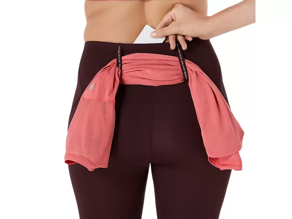 Dzięki wspierającemu dopasowaniu i miękkiej, elastycznej dzianinie, te legginsy zapewniają uczucie chłodu i komfortu w zmiennych temperaturach. Legginsy posiadają wygodną kieszeń na telefon z tyłu oraz dodatkową kieszeń na telefon lub żel z boku uda, która jest odporna na pot i ogranicza drgania. Dodatkowo dostępny jest elastyczny system przechowywania SMSB z pętelkami na kurtkę, koszulkę, ręcznik lub inne niezbędne rzeczy do biegania.