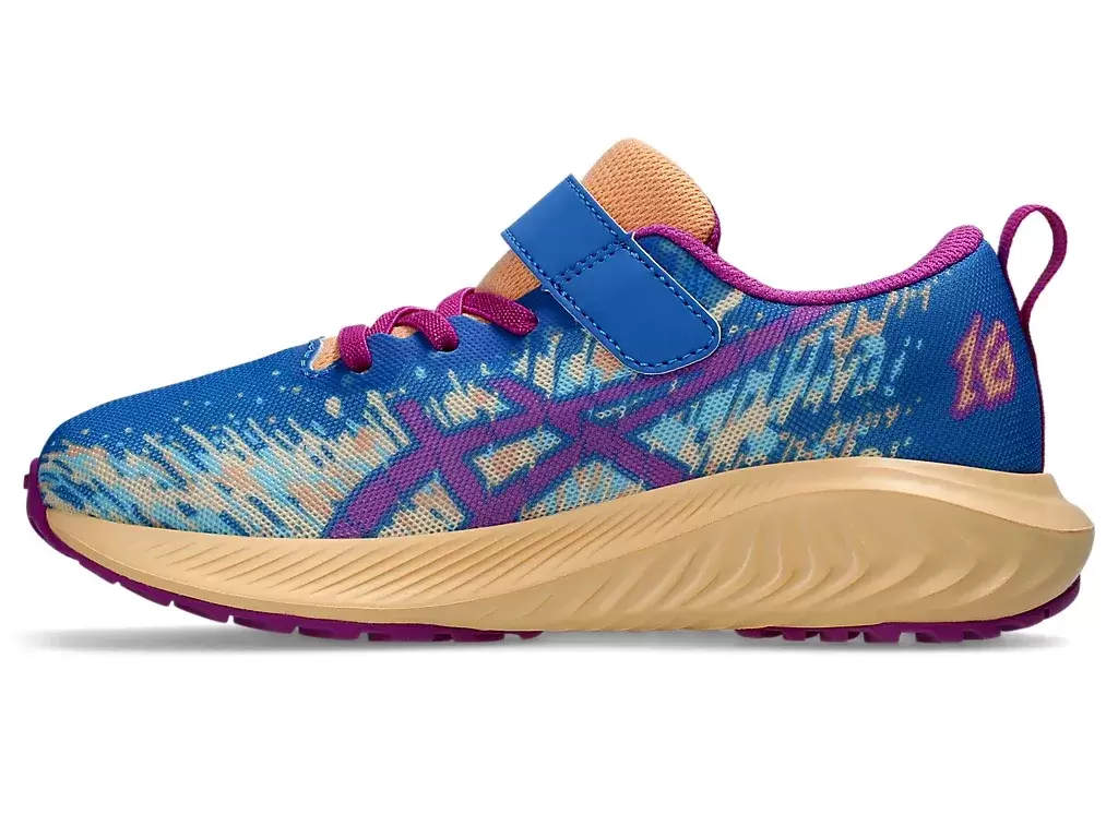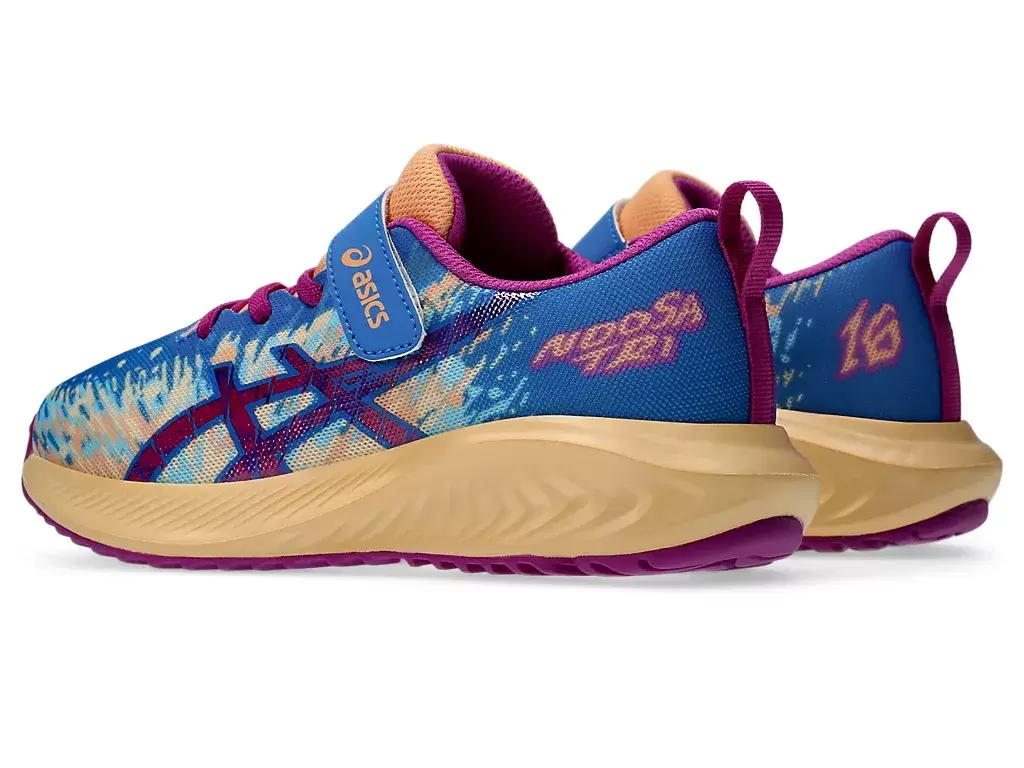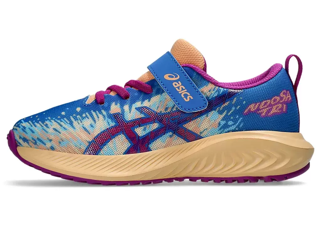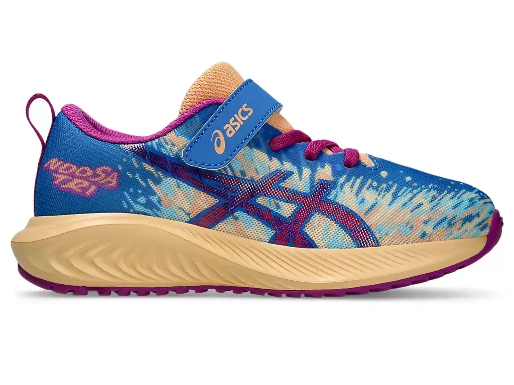 But ten charakteryzuje się cholewką z siateczki, która zwiększa przepływ powietrza i pomaga utrzymać stopy w chłodzie. Żywa kolorystyka buta połączona jest z serią wyrazistych grafik „NOOSA”. Projekt obejmuje również system zapięcia na rzepy dla lepszego dopasowania.