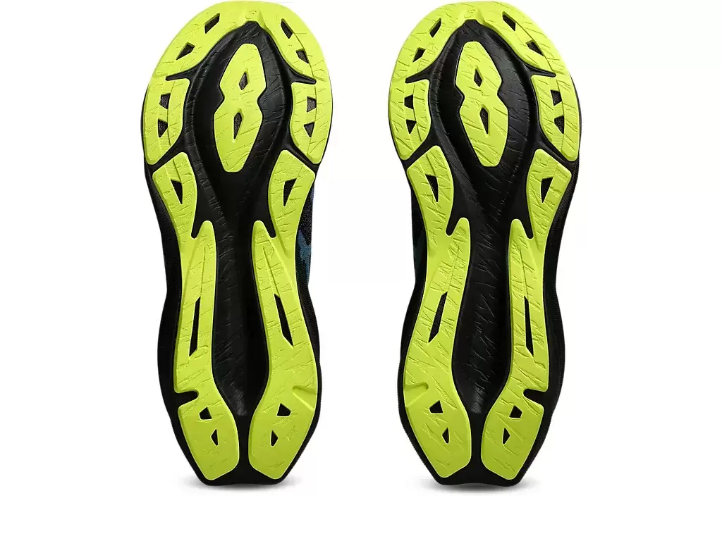 Podeszwa środkowa i zewnętrzna zostały zaprojektowane tak, aby skupiać się na przedniej części stopy i strefie kontaktu pięty z podłożem. Pomaga to uzyskać większy zwrot energii i lepsze odbicie przy niższej wysokości podeszwy.