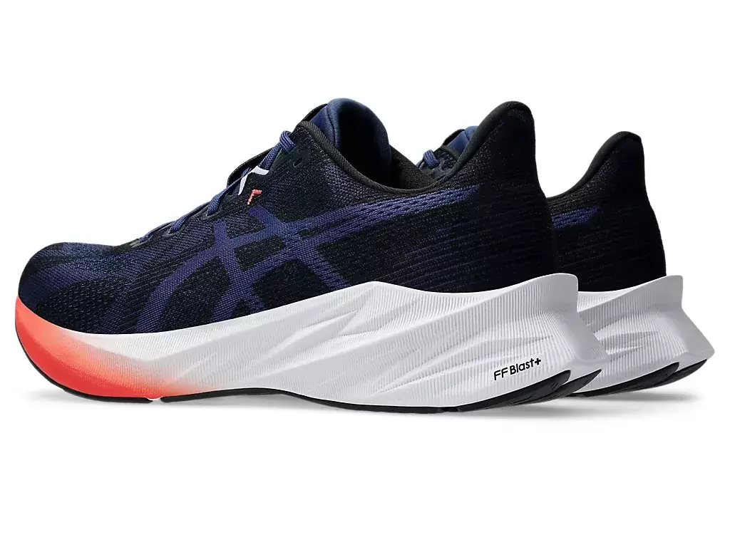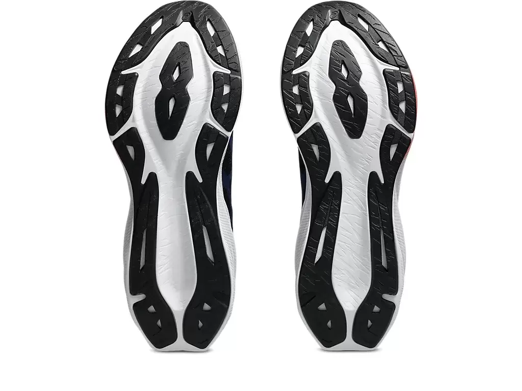 Podeszwa środkowa i zewnętrzna zostały zaprojektowane tak, aby skupiać się na przedniej części stopy i strefie kontaktu pięty z podłożem. Pomaga to uzyskać większy zwrot energii i więcej odbicia przy niższej wysokości stosu.