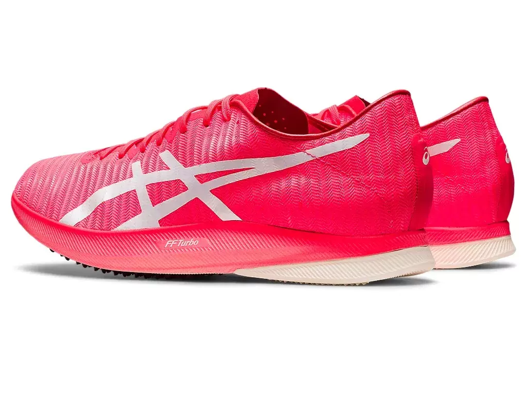 Kolec METASPEED™ LD pomaga sprinterom stawiać dłuższe kroki z mniejszym wysiłkiem. Wyposażony w amortyzację FF BLAST TURBO™, but ten zapewnia bardziej responsywne odbicie przy odbiciu od palców. Wyposażony jest w pełnowymiarową płytkę z włókna węglowego, która katapultuje Cię do przodu, wydłużając krok. Bezkołnierzowa konstrukcja podeszwy zewnętrznej z włókna węglowego została zaprojektowana w celu zwiększenia przyczepności. Zamiast przebijać powierzchnię bieżni, podeszwa ślizga się po jej górnej części, pomagając oszczędzać energię między krokami.