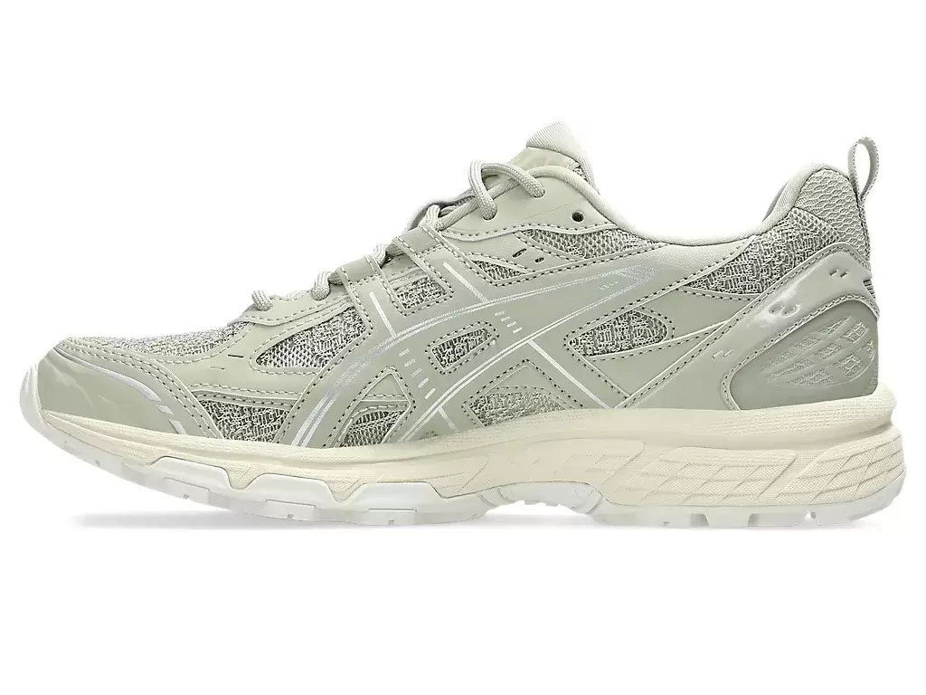 Cholewka tych butów nawiązuje do elementów designu modeli GEL-KAHANA® 3 i GEL-TARGET. Jego syntetyczne matowe i półpołyskowe warstwy łączą się z szorstką i jałową fakturą występującą na zewnątrz, tworząc estetykę miejskiego szlaku. But ma również przezroczyste sznurowadła dla podniesienia wyglądu.