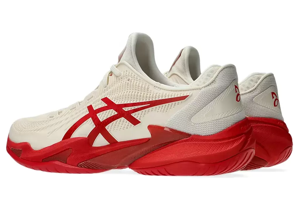 Novak ma uderzenie z zerowym krokiem. Oznacza to, że uderza rakietą w momencie lądowania. Zwiększając powierzchnię styku podeszwy zewnętrznej, but pomaga zapewnić stabilne lądowanie i może zmniejszyć obciążenie ciała. W rezultacie możesz włożyć więcej energii w wykonanie mocnego zamachu.
