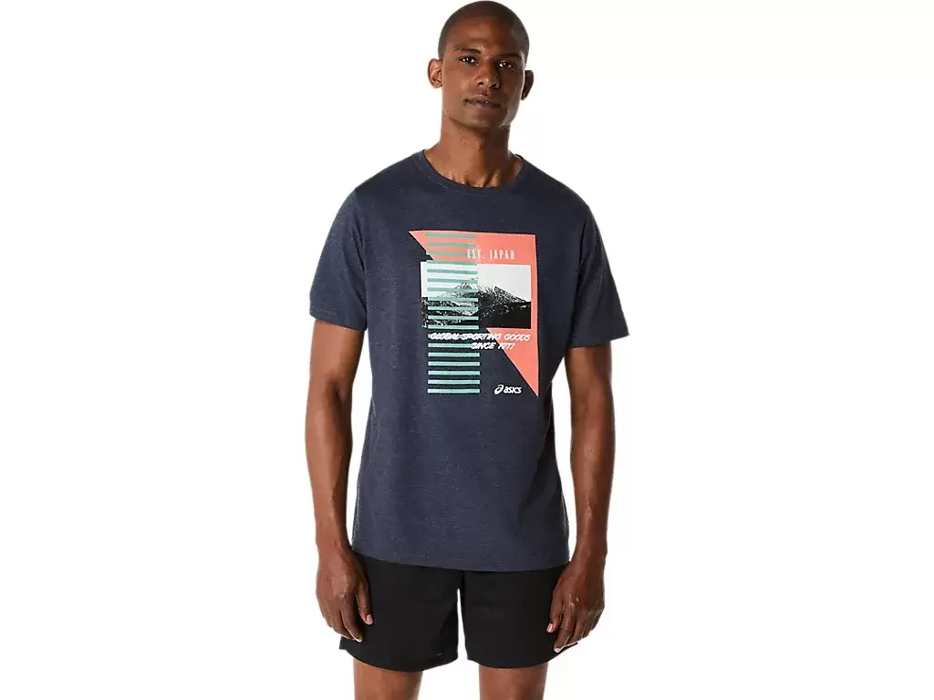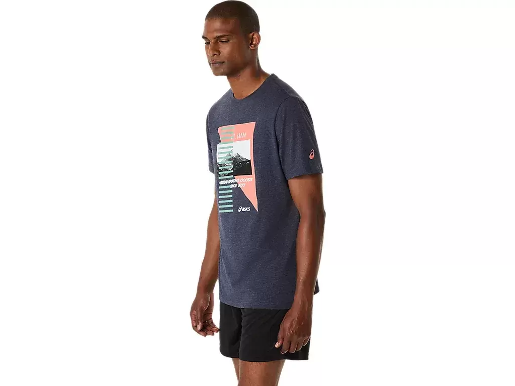 Nasza koszulka z krótkim rękawem ASICS RETRO została zaprojektowana z grafiką przedstawiającą góry w stylu retro