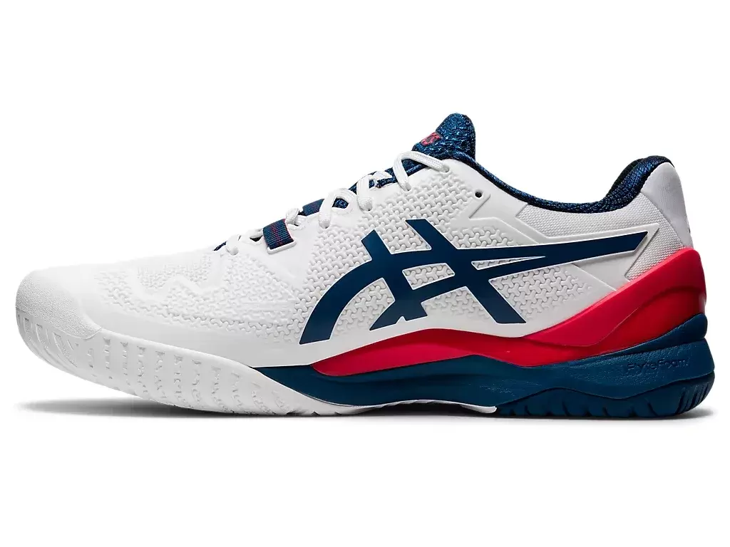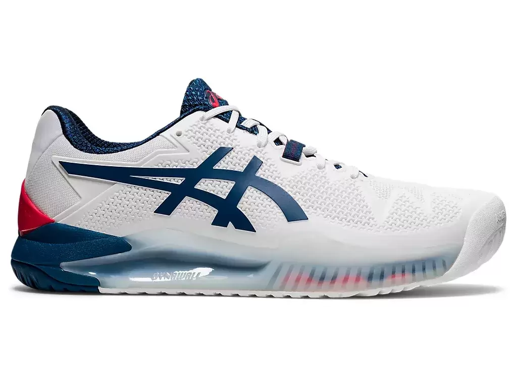 Buty tenisowe GEL-RESOLUTION® 8 (Wide) zapewniają sprężysty krok i czucie bliskości kortu, oferując jednocześnie więcej miejsca w środku dla osób o szerszych stopach. Cholewka FLEXION FIT® zapewnia idealnie dopasowane wsparcie dzięki technologii DYNAWALL™, która zapewnia dodatkową stabilizację śródstopia podczas ruchów na boki i pełne wsparcie. Dzięki zastosowaniu funkcji kontroli momentu obrotowego w zapiętku, buty te zostały zaprojektowane tak, aby pomóc utrzymać czucie zablokowanego buta podczas szybkich przejść. Cenione za amortyzację opartą na technologii GEL® w przedniej i tylnej części stopy, buty te znacznie redukują wstrząsy spowodowane gwałtownymi ruchami na korcie. Dodatkowo, model ten posiada podeszwę zewnętrzną z mieszanki AHAR®, która w połączeniu z ochraniaczem palców PGUARD™ zwiększa przyczepność na korcie i zmniejsza ogólne zużycie. Tworząc przyspieszoną reakcję z naturalnym odczuciem bliskości podłoża, buty tenisowe GEL-RESOLUTION® 8 (szerokie) pomogą Ci podejść do meczów z pewnością siebie.