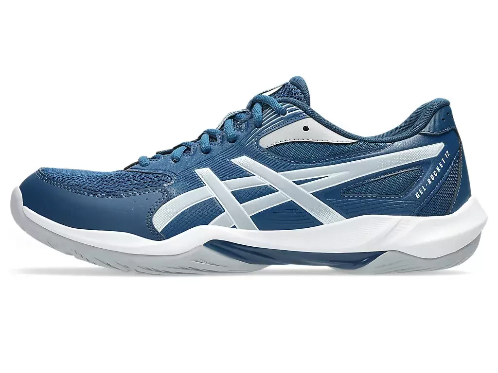 Buty GEL-ROCKET™ 12 (szerokie) zapewniają dobrą równowagę między stabilnością a elastycznością, co pozwala na pewne poruszanie się na korcie.
